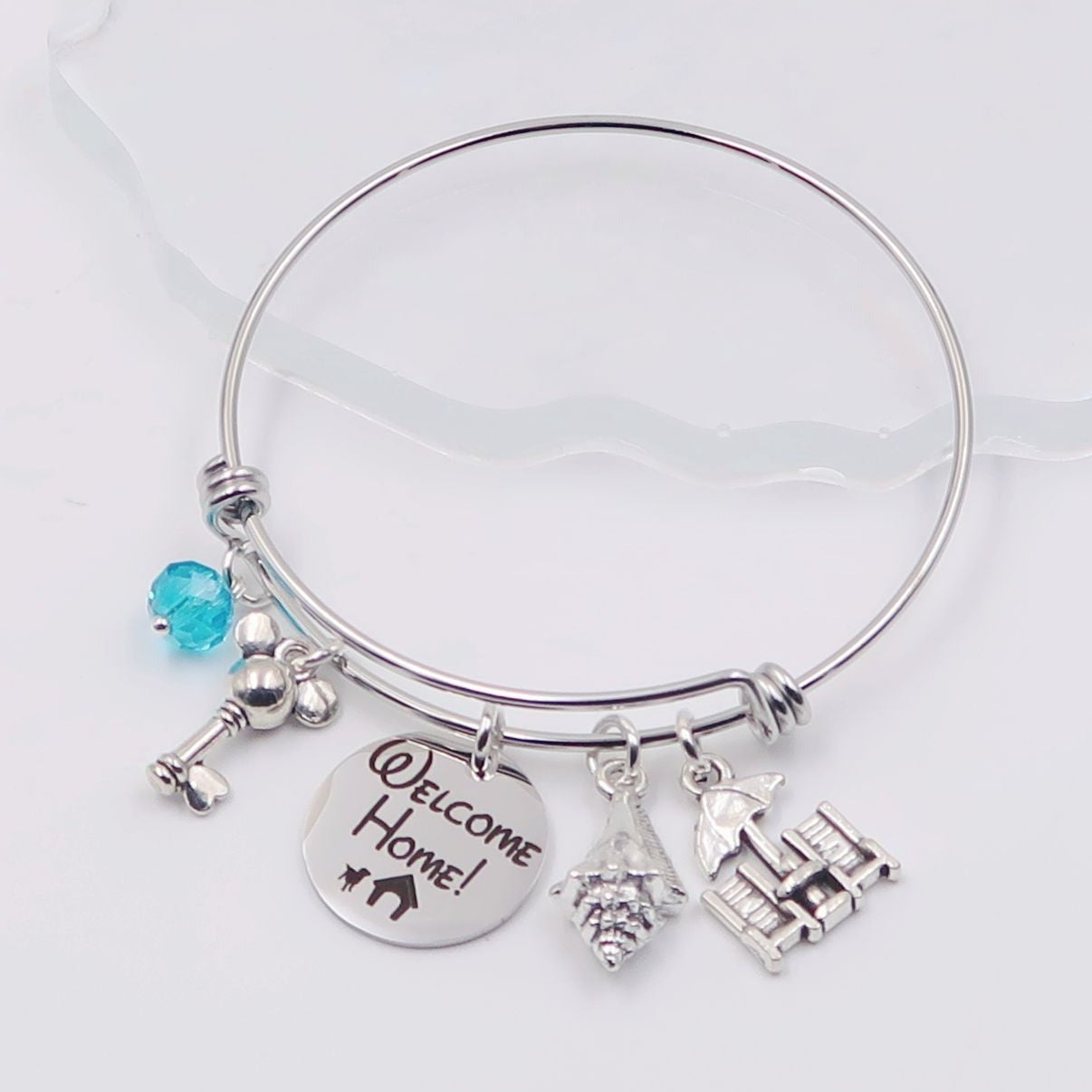 Adjustable Lightweight Bangle with Stainless Steel engraved disc.